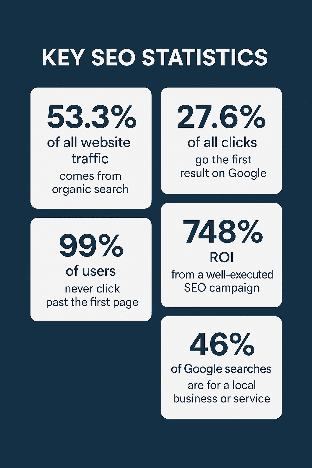In fact, a study from SEO Statistics found that a well-executed SEO campaign can deliver up to 748% ROI, making it one of the best long-term marketing investments available.